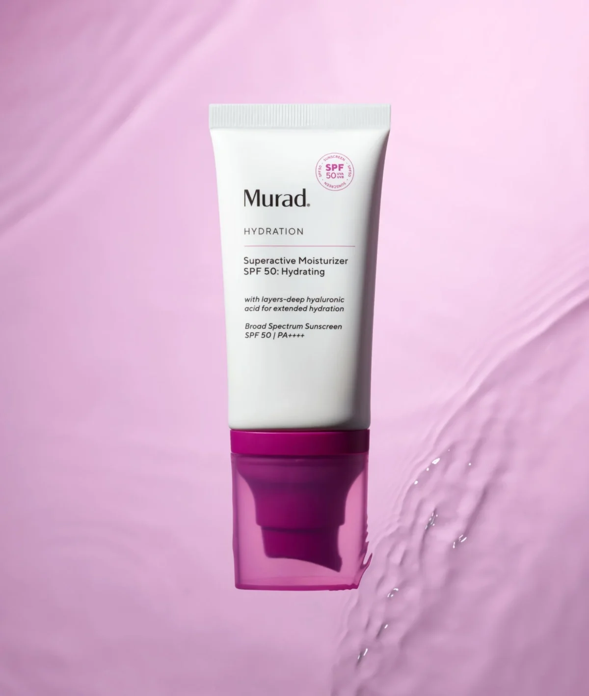 Η Murad Superactive SPF 50 Moisturizer είναι μια ενυδατική κρέμα προσώπου με υψηλή αντηλιακή προστασία SPF 50 που ενυδατώνει βαθιά, θρέφει την επιδερμίδα και την προστατεύει από τη βλάβη των UVA/UVB ακτίνων σε μία κίνηση. Η ελαφριά, μη φαγεσωρογόνος σύνθεσή της είναι ιδανική για καθημερινή χρήση κάτω από μακιγιάζ, χωρίς λευκά υπολείμματα.  Αυτή η ενυδατική κρέμα πολλαπλών δράσεων 3 σε 1 προσφέρει ολοήμερη, δροσερή ενυδάτωση, υπερφορτισμένη με τεχνολογία υαλουρονικού οξέος για σφριγηλό δέρμα & αντηλιακή προστασία με υψηλό δείκτη προστασίας SPF 50 σε 1 βήμα